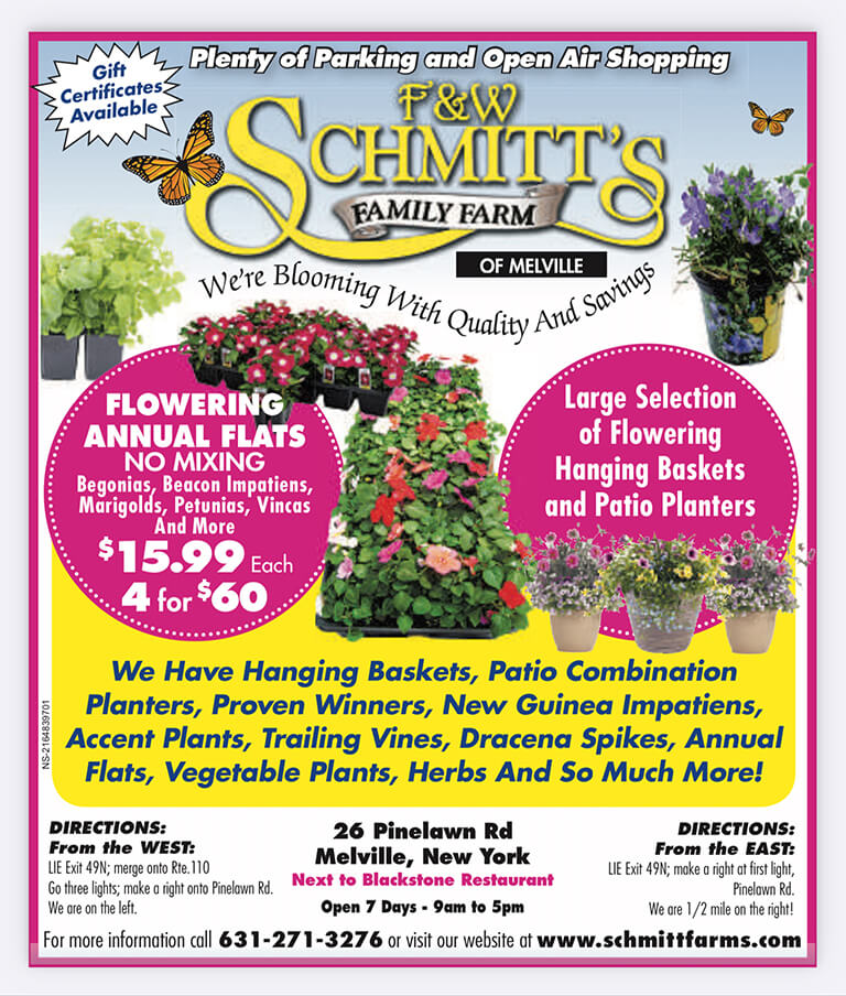 We are a family owned and operated farm located in Melville, NY. Come to our greenhouse in the spring, where we offer a variety of flowers, annuals and perennials for sale to brighten your home or yard. Our spring events are always family friendly, and our experienced staff is here to help you with your questions.